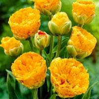 После холодной суровой зимы многие жалуются на нехватку солнца. Но только не садоводы, на клумбе которых цветут тюльпаны сорта Голд Февер! Соцветия этого растения окрашены в позитивный ярко-желтый цвет, от которого так и веет радостью, теплом и счастьем. Даже если за окном будет лить дождь и злиться бродяга-ветер, на вашей клумбе будет светить солнышко, состоящее из множества махровых лепестков.