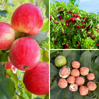 В состав комплекта входят Кизил Владимирский, Орех Грецкий Крупноплодный и Яблоня Розовый Налив/Летняя.